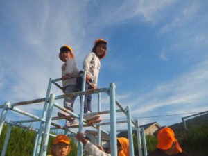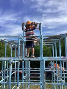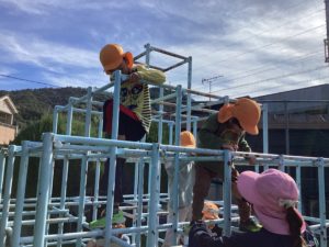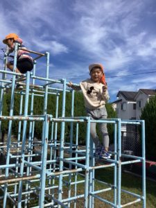 ジャングルジムでは「高いところ怖い・・・」と言いながらも「友だちと一緒に登りたい!」と