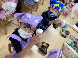 おにぎりを握った後、好きなふりかけを選んで完成しました✨