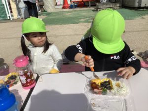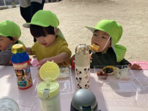 お外で食べると気分が変わりとても楽しかったようで、あっという間に完食してしまった子ども達でした🥰