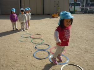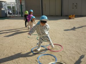 フープジャンプ❗❗❗❗❗れんげ組が「ケンケンパッ✨」とフープをジャンプして遊んでいると、もも組やさくら組のお友達も“ジャンプ😄”と一生懸命跳ぼうとしていましたよ🧡😆🧡