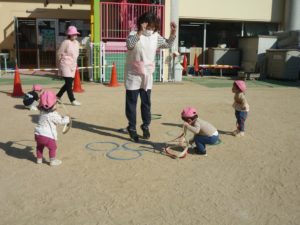 健診後は、園庭でもも組・さくら組・れんげ組の3クラスで関わりながら遊びを楽しみました🎵