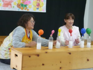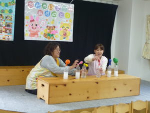 その後は、保育士の実験コーナーでお祝いしました😊