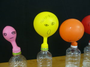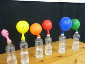 消えないシャボン玉や、風船の実験コーナーで、子ども達は興味津々でそばまで来て楽しんでいました。