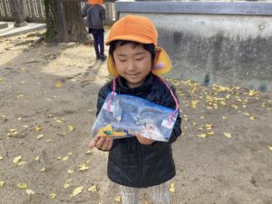 春に自分たちで作ったお散歩バッグに拾ったものを入れて嬉しそうに持ち歩いていました。