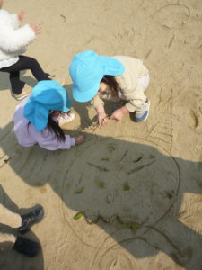 大好きなアンパンマンの絵を描いたり、節分が近いこともあり、鬼の絵を描いたりして楽しんでいました🤗保育士も鬼を描いていると、そこに子ども達が髪の毛を描き加えてみたり、集めた葉や枝を顔のパーツにしてみたりと、拾い集めた物を活用しながら遊ぶ姿が見られました😄💛