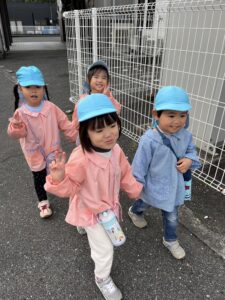 園に戻ってからも、「お散歩楽しかったね!」「横断歩道上手にわたれたね」と振り返る姿が見られ、楽しい思い出がまた一つ増えた、だりあ組の子どもたちでした🎵