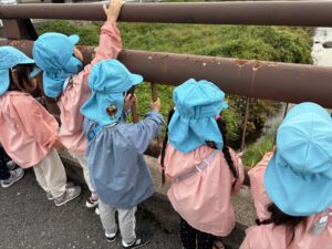 橋に着くと川を覗いて👀「なにもいないね」「あっちにいるかな?」とみんなで水鳥を探してみましたが、なかなか見つからず。。。