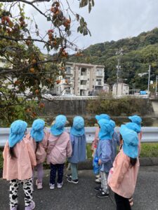 向かった先には、の木がありました😆「柿食べたことあるよ!」「どんな味がするん?」と、柿の木の下で話が盛り上がっていました✨