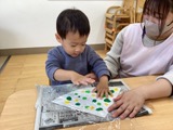 絵の具のひんやりとした感触をサランラップ越しに不思議そうに味わっていた子どもたち。絵の具が広がる様子を見て「わぁ~!」と言いながら楽しんでいました✨