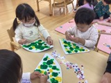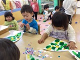 絵の具が乾いたら大好きなシール貼り!好きな色のシールをたくさん貼りながら「