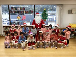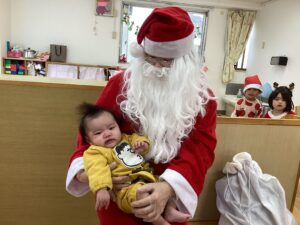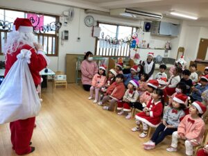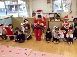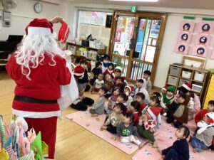 扉を開けてみるとサンタクロースが五日市花ぞのこども園に遊びに来てくれました!