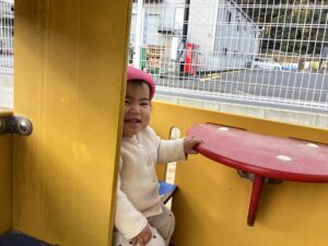 園庭にあるお家の中に入るのがお気に入りのももぐみさん✨