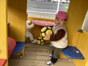 お友だちと一緒にボールを投げたり、追いかけたりしておもいきり楽しんでいましたよ💓