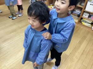 だりあぐみのお友だちにゆりぐみやすみれぐみのお兄さんお姉さんが教えてあげる姿も😄