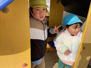 元気いっぱいに園庭に出てお友だちと一緒に遊びました😊
