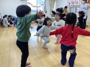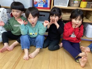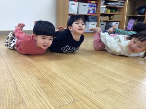 れんげ組の姿を見て、真似をしてさくら組ともも組も体を動かして楽しんでいました😆