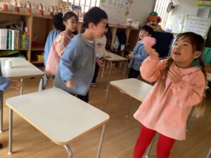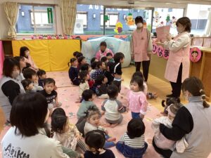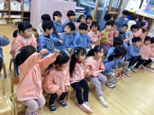 五日市花ぞのこども園の子どもたちを悪いことから守ってもらえるように、みんなで「うれしいひなまつり」を歌いました。