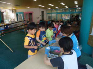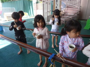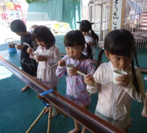 そうめん流し二日目!本日は年長ぱんだ組です。