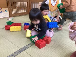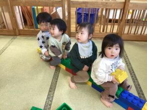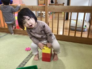 日々、心や体の成長を見せてくれる子どもたち。日々の生活で自我も出始めたり言葉がまだ話せない分、手が出たりと思い通りにいかず泣いて怒ったりと一生懸命に自分を表現してくれるようになりました。しっかりと子どもたちの気持ちや思いを受け止めたり、やり取りを仲介していくなどしていき、これからもみんなと楽しく遊べるように寄り添っていきたいと思います。
