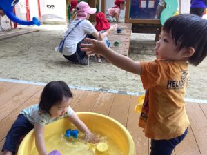 今年の夏は日々35℃前後という暑い日が続いていますが、子どもたちは毎日元気に過ごしています。