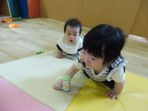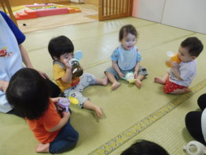 こんな風に暑い日々を元気に過ごしている子どもたちです。秋になれば思い切り戸外に出て、外の爽やかな空気に触れて遊びたいと思います。