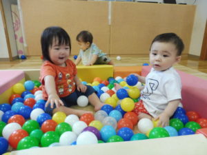室内ではアンパンマンの人形で遊んだり、しっかり体を動かしたりして遊んでいます。