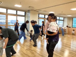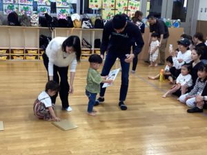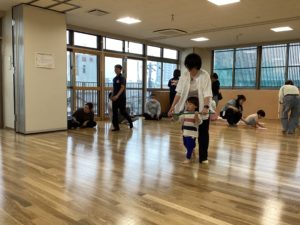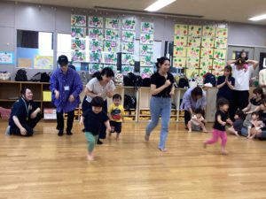 いつもと違う雰囲気に、緊張していた様子もみられましたが、次第に笑顔がみられるようになり、保護者の方と一緒に身体を動かして楽しんでいました。