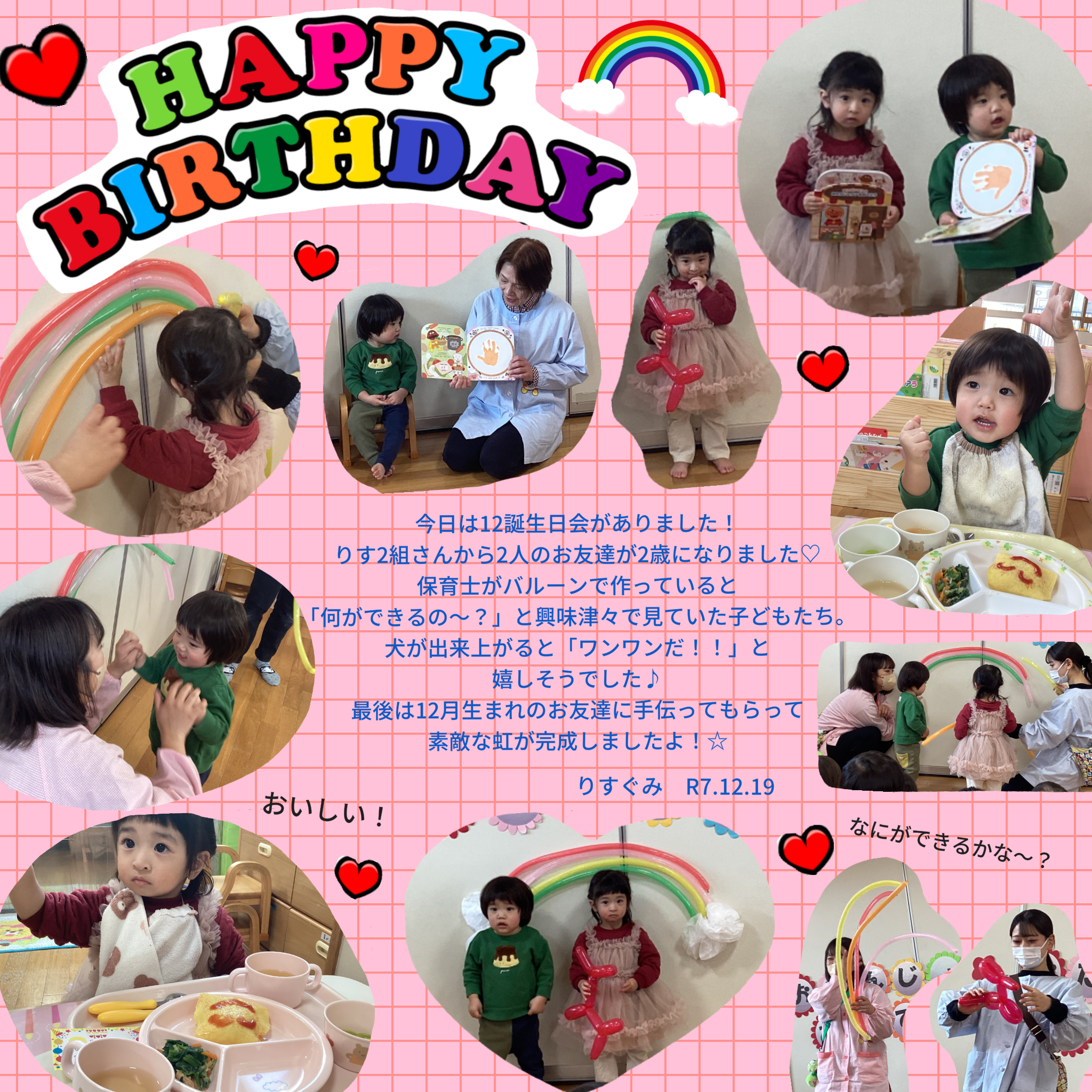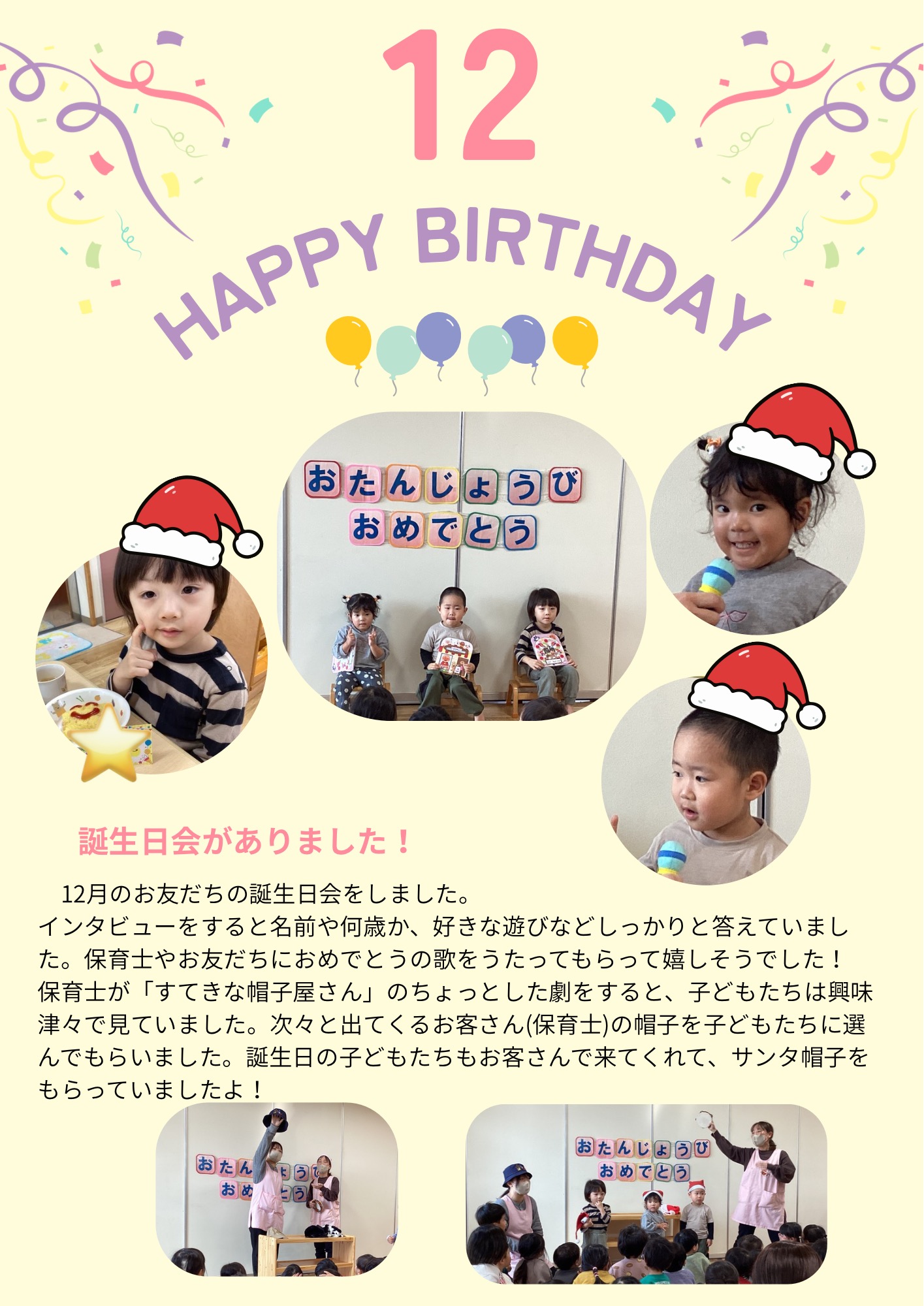12月の誕生日会がありました!(ひよこ組 りす組 うさぎ組)