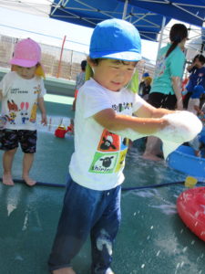 「泡大盛弁当の出来上がりで~す!」「見てー!泡のジュース!」…と夢中になって遊ぶ遊ぶ!