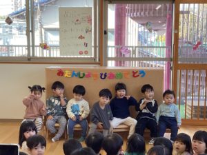 保育士の出し物や歌などで誕生日会が盛り上がっていました。