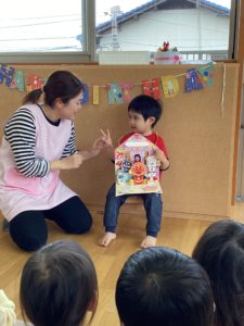 幼児クラスの誕生日のお友だちは、ちょっぴり恥ずかしがりながらも、みんなの前でしっかりインタビューに答えてくれました。
