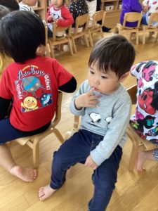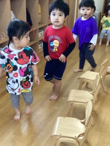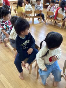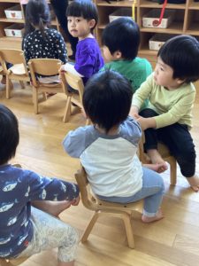 さすが!「初めて!」のイスとりゲーム。2歳児さんらしさがあふれるとてもほっこりした光景がひろがりました。