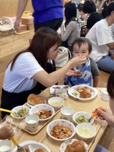 そして、た~くさん遊んだ後は…お楽しみの親子で給食タイム!