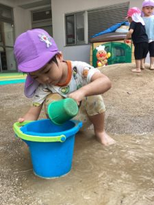 園庭でどろんこ遊びを楽しんだうさぎ組さん。