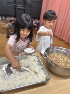 「おかわりー!」「もっと食べたい!」と次々に列ができて先生たちが大忙になることも!