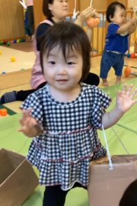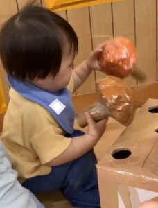 お買い物みたいに見せ合ったり、「ぱくっ!」と食べるまねっこをしたり。
