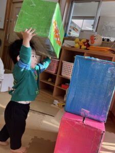 段ボール遊びは、考える力、いろいろと試してみる気持ち、夢中になる力がぎゅっと詰まった、最高の遊びです!