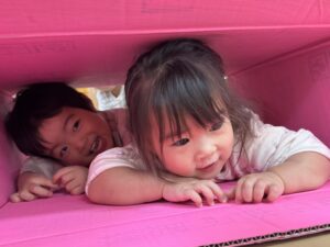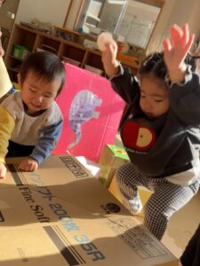 ただの段ボール箱も、子どもたちにとっては宝箱!!