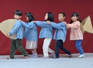 一人ひとりが「お話の世界」に入り、役になりきって、はりきっている子どもたち。