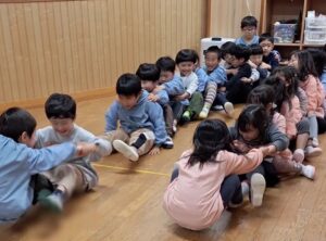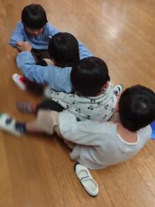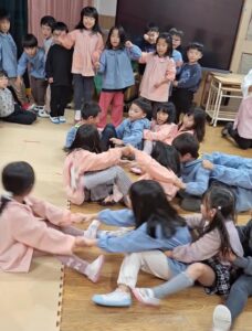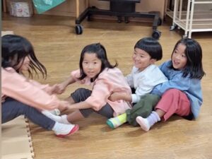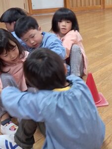 みんなでつながって「せーのっ!」と前へ進む姿は、ちょっぴりぎこちない電車のようで、見ているこちらも自然と笑顔に!!