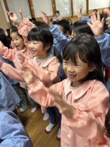 乳児クラスの子どもたちも一生懸命まねっこ。