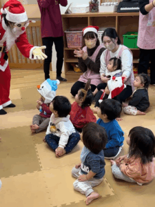 うさぎ・きりん・ぞう・ぱんだ組のクリスマス会は、わくわく感が最高潮!