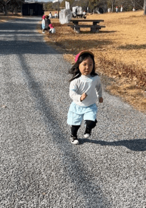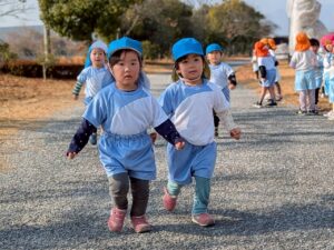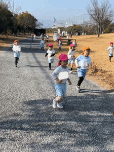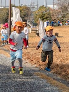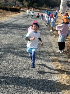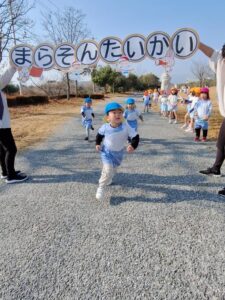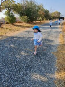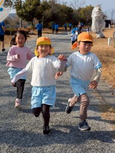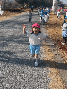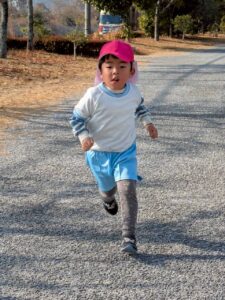 走りながらも友だちとおしゃべりしながら、にこにこ笑顔で走ったり、ゴールを目指して一生懸命走ったり…。