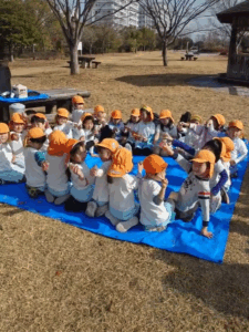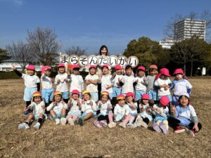 少しドキドキ、でもどこかわくわくした表情で水鳥の浜公園へ行く子どもたち。
