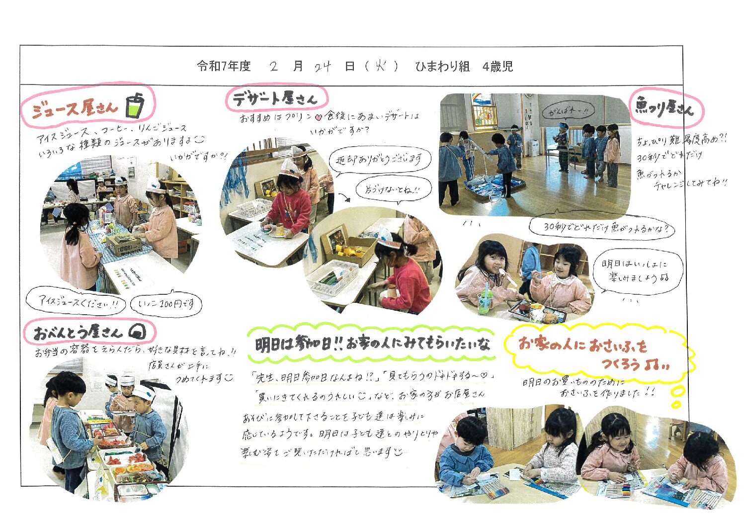 入園に関することと保育内容をご案内いたします。
