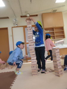 「〇〇ちゃんと一緒に積み木で家を作る約束してるから楽しみ♪」