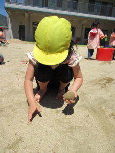 「お外で、もっとピカピカの泥団子作る!」