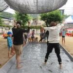 なかなかつかめず、活きの良いニジマスに大苦戦!少しずつコツをつかんで掴める子どもたちの姿も見られました😊