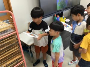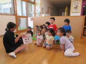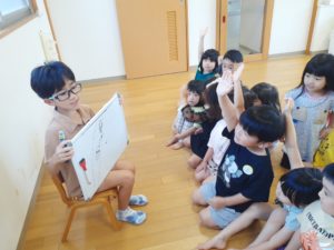 年中に入った3年生のI先生は、「みんなに良い姿勢の話をしてもいいですか?」等、気づいた事を教えてくれたり、考えたクイズを出してくれたり。