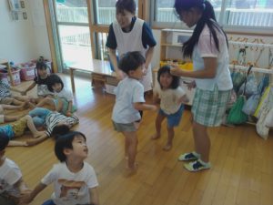 年長に入った3年生のS先生は、「約束の時間になったから、片づけようね」等、声掛けも時間を見て行動できるなんて、さすが